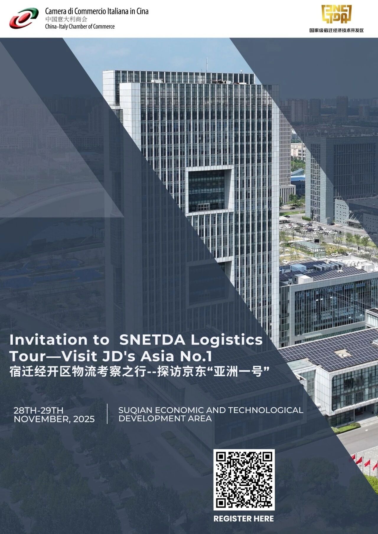 The China-Italy Chamber of Commerce (CICC) is delighted to invite you to the Suqian Logistics Insight Tour, organized in cooperation with the Suqian Economic Development Area. This exclusive event will take place on November 28-29, 2025, in Suqian, Jiangsu, offering a unique opportunity to explore one of China's most advanced logistics hubs and its cutting-edge supply chain solutions.