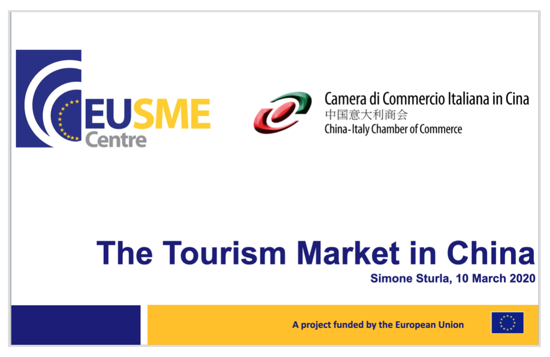 The China-Italy Chamber of Commerce is glad to inform you of the publication of “The Tourism Market in China”, a Webinar conducted by Mr. Simone Sturla - General Manager for the Chinese Outbound Tour Operator Atrails, Coordinator of the CICC Tourism Working Group ICTC Italy China Travel Club. The Webinar is part of the Chamber’s activities as implementing partner of the EU SME Centre